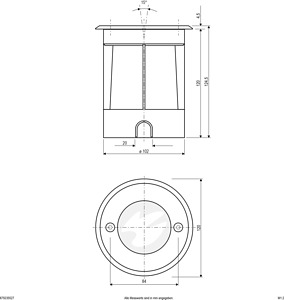 Der Leuchtenkörper ist aus Aluminium, die Abdeckplatte hingegen aus V2A-Edelstahl gefertigt. Die Kabeleinführung erfolgt über die am Boden befindliche Kabelverschraubung, welche für Kabel bis 9mm Durchmesser geeignet ist. Es besteht die Möglichkeit, die Leuchte ohne den im Lieferumfang enthaltenen Kunststoff-Einbautopf zu montieren, in diesem Fall beträgt der Lochausschnitt 96mm während die Einbautiefe unverändert bleibt. Das mitgelieferte GU10-LED-Leuchtmittel kann bei Bedarf jederzeit ausgetauscht werden. Die maximale Überfahrgeschwindigkeit beträgt 20km/h, der Schwenkwinkel beträgt 10°. Zusätzlich ist ein mattes Schutzglas im Lieferumfang enthalten.