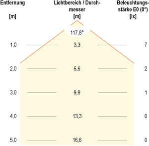 | Ausstrahlungswinkel | extrem breitstrahlend >80° |