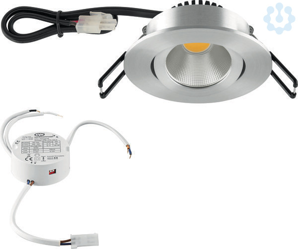 Mit der COB-LED Deckeneinbauleuchte lassen sich vielfältige Anwendungen im Innenbereich, wie z. B. Effektbeleuchtung, Raumbeleuchtung, Akzentuierte Beleuchtung und vieles mehr realisieren. Da außerdem die MM-Kennzeichnung gegeben ist, lässt sich diese sogar im Möbelbau verwenden. Zusätzliche Kosten für Leuchtmittel entfallen bei dieser Leuchte, da die Leistung von einem fest verbauten LED-Chip geliefert wird. Das mitgelieferte Netzgerät kann entweder über DALI oder Push-L gedimmt werden. Der Schwenkwinkel beträgt 20°, Protokoll: DT6, DALI2.