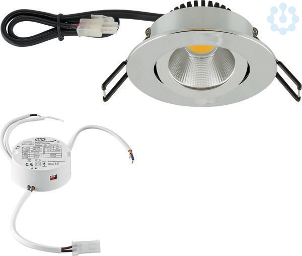 Mit der COB-LED Deckeneinbauleuchte lassen sich vielfältige Anwendungen im Innenbereich, wie z. B. Effektbeleuchtung, Raumbeleuchtung, Akzentuierte Beleuchtung und vieles mehr realisieren. Da außerdem die MM-Kennzeichnung gegeben ist, lässt sich diese sogar im Möbelbau verwenden. Zusätzliche Kosten für Leuchtmittel entfallen bei dieser Leuchte, da die Leistung von einem fest verbauten LED-Chip geliefert wird. Das mitgelieferte Netzgerät kann entweder über DALI oder Push-L gedimmt werden. Der Schwenkwinkel beträgt 20°, Protokoll: DT6, DALI2.
