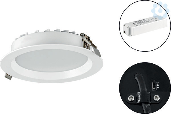 Mit der LED Deckeneinbauleuchte lassen sich, dank der hohen Lichtausbeute, auch anspruchsvolle Beleuchtungsaufgaben problemlos realisieren. Dank der gegebenen Schutzart und der geringen Einbautiefe ergeben sich deutlich mehr Verwendungsmöglichkeiten gegenüber anderen LED-Leuchten. Mit dem rückseitig angebrachten Schalter kann eine von drei möglichen Farbtemperaturen eingestellt werden. Die möglichen Farbtemperaturen und daraus resultierenden Lumen sind: 3000K (2500lm), 4000K (2600lm) und 5700K (2550lm). Da die Leuchte inkl. Netzgerät geliefert wird, fallen hierfür keine zusätzlichen Kosten an. Das Netzgerät hat folgende Maße: 153x44x31mm.