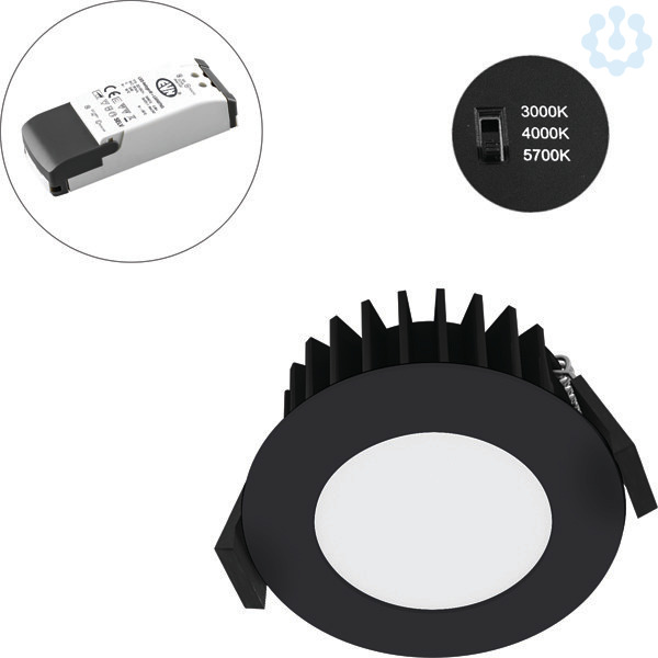 LED Deckeneinbauleuchte für verschiedene Anwendungsbereiche, wie z. B. flächendeckende, aber auch effektvolle Beleuchtungen in Flur, Wohnzimmer, Büro und vieles mehr. Die Leuchte kann auch über eine Zentralbatterie betrieben werden, mit einer Eingangsspannung von 180-250V/DC. Mit dem rückseitig angebrachten Schalter kann eine von drei möglichen Farbtemperaturen eingestellt werden. Die möglichen Farbtemperaturen und daraus resultierenden Lumen sind: 3000K (746lm), 4000K (840lm) und 5700K (800lm). Die Anschlussleitung zwischen Netzgerät und Leuchte hat eine Länge von 27cm. Das Netzgerät hat folgende Maße: 109x40x22mm. Max. tc: 68°C. Die Farbe ist ähnlich RAL7016.