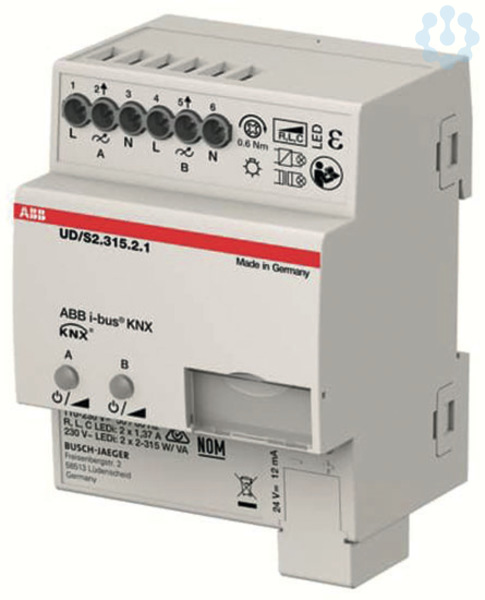 Mehrkanal-Universaldimmaktor optimiert für das Dimmen von Retrofit-LED-Leuchtmitteln (LEDi). Auch zum Dimmen von Glühlampen, Niedervolt-Halogenlampen mit konventionellen oder elektronischen Transformatoren, 230 V-Halogenlampen und dimmbaren Halogen-Energiesparlampen geeignet. Automatische Lasterkennung (deaktivierbar). Separater N-Anschluss pro Kanal. Parallelschaltung der Ausgänge zur Erhöhung der Ausgangsleistung möglich. Ausgänge können in Gruppen parallel geschaltet werden. Mindestlast: 2W. Manuelle Bedienung am Gerät auch ohne Busspannung oder im unprogrammierten Zustand möglich. Programmierung des Gerätes auch ohne anliegende 230V-Versorgungsspannung möglich. Umfangreiche Test- und Diagnosefunktionen über das i-bus Tool. Schnelle Parametrierung in der ETS durch kopierbare Kanalvorlagen. Mit integriertem Bus-Ankoppler. Nennleistung bei 230 V~ Netzspannung: 230 V~ Glüh- und Halogenlampen: 2 x 315 W/VA bis 1 x 500 W/VA. Dimmbare 230 V~ LEDi: 2 x 315 W/VA bis 1 x 500 W/VA im Phasenabschnitt, 2 x 120 W/VA bis 1 x 200 W/VA im Phasenanschnitt. Induktive L-Trafos mit LED/Niedervolthalogenlampe: 2 x 315 W/VA bis 1 x 500 W/VA. Elektronische C-Trafos mit LED/Niedervolthalogenlampe: 2 x 315 W/VA bis 1 x 500 W/VA. Elektronische LC-Trafos mit LED/Niedervolthalogenlampe: 2 x 120 W/VA bis 1 x 200 W/VA.