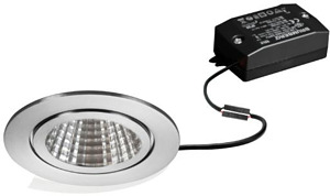 LED-Einbaudownlightset, V4A, IP54, schaltbar, edelstahl, rund. Ausgeführt in kompakter Bauform für werkzeuglose Schnellmontage zum Deckeneinbau. Set inkl. Konverter für 230 V-Netzspannung, schaltbar, Maße Konverter: L 68 x B 35 x H 21 mm Montageart: Einbaumontage, Montageort: Deckenmontage, Material: Edelstahl V4A / Aluminium / Glas / Kunststoff, Schutzart raumseitig: nach DIN EN 60529: IP54, Schutzklasse: (EN 61140) II, Spannung: 230V AC 50Hz, Leistung: 6 W, Anzahl der Leuchtmittel / Fassungen: 1 Stück, Lichtstrom: 680 lm, Farbtemperatur: 3.000 K, Abstrahlwinkel: 38°, Verstellbarkeit: nicht verstellbar, Mit Betriebsgerät: Ja, Dimmbar: Nein, Art der Dimmung: schaltbar.