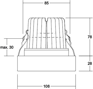 LED-Einbaudownlight, transparent satiniert, rund. Ausgeführt in kompakter Bauform für werkzeuglose Schnellmontage zum Deckeneinbau. Montageart: Einbaumontage, Montageort: Deckenmontage, Material: Aluminium / Acryl, Schutzart raumseitig: nach DIN EN 60529: IP20, Schutzklasse: (EN 61140) III, Leistung: 13,6 W, Anzahl der Leuchtmittel / Fassungen: 1 Stück, Lichtstrom: 1.172 lm, Farbtemperatur: 3.000 K, Abstrahlwinkel: 36°, Verstellbarkeit: nicht verstellbar, ohne Betriebsgerät, Art der Dimmung: abhängig vom Betriebsgerät.