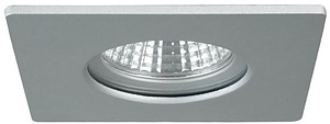 LED-Einbaudownlight, IP65, silber, quadratisch. Ausgeführt in kompakter Bauform für werkzeuglose Schnellmontage zum Deckeneinbau. Ausführung: Plug&Play, Montageart: Einbaumontage, Montageort: Deckenmontage, Material: Aluminium / Glas, Schutzart: nach DIN EN 60529: IP65*, Schutzklasse: (EN 61140) III, Leistung: 6W, Anzahl der Leuchtmittel / Fassungen: 1.0 Stk, Lichtstrom: 680lm, Farbtemperatur: 3000 K, Lichtfarbe: weiß, Abstrahlwinkel: 38°, Verstellbarkeit: nicht verstellbar, ohne Betriebsgerät, Art der Dimmung: abhängig vom Betriebsgerät.