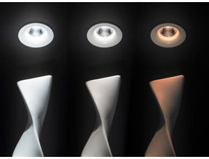 LED-Einbaudownlight, dim2warm, strukturweiß, rund. Ausgeführt in kompakter Bauform für werkzeuglose Schnellmontage zum Deckeneinbau. Wird die Leuchte gedimmt, verringert sich die Farbtemperatur. Ausführung: Plug&Play, Montageart: Einbaumontage, Montageort: Deckenmontage, Material: Aluminium / Polycarbonat, Schutzart raumseitig: nach DIN EN 60529: IP20, Schutzklasse: (EN 61140) III, Leistung: 12 W, Anzahl der Leuchtmittel / Fassungen: 1 Stück, Lichtstrom: 830 lm, Farbtemperatur: von 3.000 K bis 1.800 K, Abstrahlwinkel: 18°, Verstellbarkeit: nicht verstellbar, ohne Betriebsgerät, Art der Dimmung: abhängig vom Betriebsgerät.