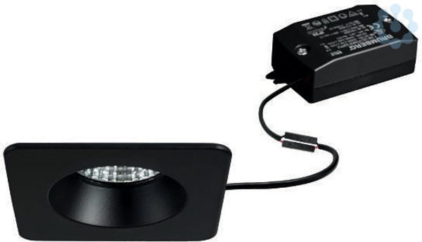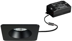 LED-Einbaudownlightset, IP54, schaltbar, schwarz, quadratisch. Ausgeführt in kompakter Bauform für werkzeuglose Schnellmontage zum Deckeneinbau. Set inkl. Konverter für 230 V-Netzspannung, schaltbar, Maße Konverter: L 68 x B 35 x H 21 mm Ausführung: ohne Fassung, Montageart: Einbaumontage, Montageort: Deckenmontage, Material: Aluminium / Glas / Kunststoff, Schutzart raumseitig: nach DIN EN 60529: IP54, Schutzklasse: (EN 61140) II, Spannung: 230V AC 50Hz, Leistung: 6 W, Anzahl der Leuchtmittel / Fassungen: 1 Stück, Lichtstrom: 540 lm, Farbtemperatur: 2.700 K, Abstrahlwinkel: 38°, Verstellbarkeit: nicht verstellbar, Mit Betriebsgerät: Ja, Dimmbar: Nein, Art der Dimmung: schaltbar.
