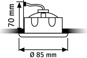 für die Innenanwendung, IP 44 Gehäuse: Stahlblech, Sichtblende: Aluminium-Druckguss, Schutzglas Gehäusefarbe: eisen gebürstet nicht schwenkbar Ausstrahlwinkel: 24° Leistung: 6,5 W Lichtfarbe: 2700 K Lichtstrom: 463 lm CRI: >80 Lebensdauer L70B50: >= 30.000 h Betriebsstrom: 350 mA DC Schutzklasse III Einbautiefe: 70 mm Deckenausschnitt: 72 mm Außendurchmesser: 85 mm Energieeffizienzklasse: G exklusive Konstantstrom-Konverter