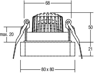 LED-Einbaustrahler, strukturweiß, quadratisch. Ausgeführt in kompakter Bauform für werkzeuglose Schnellmontage zum Deckeneinbau. Montageart: Einbaumontage, Montageort: Deckenmontage, Material: Aluminium / Glas, Schutzart raumseitig: nach DIN EN 60529: IP20, Schutzklasse: (EN 61140) III, Leistung: 6 W, Anzahl der Leuchtmittel / Fassungen: 1 Stück, Lichtstrom: 680 lm, Farbtemperatur: 3.000 K, Abstrahlwinkel: 38°, Verstellbarkeit: schwenkbar, ohne Betriebsgerät, Art der Dimmung: abhängig vom Betriebsgerät.
