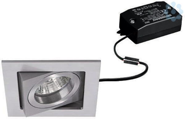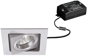 LED-Einbaustrahlerset, schaltbar, alu matt, quadratisch. Ausgeführt in kompakter Bauform für werkzeuglose Schnellmontage zum Deckeneinbau. Set inkl. Konverter für 230 V-Netzspannung, schaltbar, Maße Konverter: L 68 x B 35 x H 21 mm Ausführung: ohne Fassung, Montageart: Einbaumontage, Montageort: Deckenmontage, Material: Aluminium / Glas / Kunststoff, Schutzart raumseitig: nach DIN EN 60529: IP20, Schutzklasse: (EN 61140) II, Spannung: 230V AC 50Hz, Leistung: 6 W, Anzahl der Leuchtmittel / Fassungen: 1 Stück, Lichtstrom: 680 lm, Farbtemperatur: 3.000 K, Abstrahlwinkel: 38°, Verstellbarkeit: schwenkbar, Mit Betriebsgerät: Ja, Dimmbar: Nein, Art der Dimmung: schaltbar.