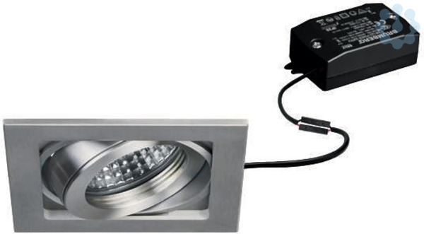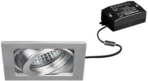LED-Einbaustrahlerset, kardanisch, schaltbar, alu matt, quadratisch. Ausgeführt in kompakter Bauform für werkzeuglose Schnellmontage zum Deckeneinbau. Set inkl. Konverter für 230 V-Netzspannung, schaltbar, Maße Konverter: L 68 x B 35 x H 21 mm Ausführung: ohne Fassung, Montageart: Einbaumontage, Montageort: Deckenmontage, Material: Aluminium / Glas / Kunststoff, Schutzart raumseitig: nach DIN EN 60529: IP20, Schutzklasse: (EN 61140) II, Spannung: 230V AC 50Hz, Leistung: 6 W, Anzahl der Leuchtmittel / Fassungen: 1 Stück, Lichtstrom: 680 lm, Farbtemperatur: 3.000 K, Abstrahlwinkel: 38°, Verstellbarkeit: drehbar und schwenkbar, Mit Betriebsgerät: Ja, Dimmbar: Nein, Art der Dimmung: schaltbar.