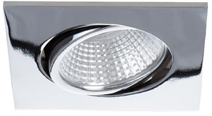 LED-Einbaustrahler, chrom, quadratisch. Ausgeführt in kompakter Bauform für werkzeuglose Schnellmontage zum Deckeneinbau. Ausführung: Plug&Play, Montageart: Einbaumontage, Montageort: Deckenmontage, Material: Aluminium / Glas, Schutzart raumseitig: nach DIN EN 60529: IP20, Schutzklasse: (EN 61140) III, Leistung: 3W, Anzahl der Leuchtmittel / Fassungen: 1.0 Stk, Lichtstrom: 290 lm, Farbtemperatur: 2.700 K, Lichtfarbe: weiß, Abstrahlwinkel: 38°, Verstellbarkeit: schwenkbar, Mit Betriebsgerät: Nein, Art der Dimmung: Abhängig vom Betriebsgerät.