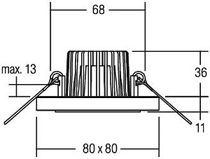 LED-Einbaustrahler cr glän. 6W quad. 3000K 577lm IP20 LF: ws