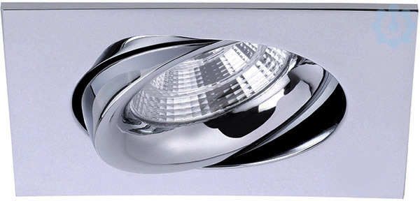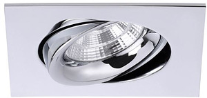 LED-Einbau. 350mA 5W 3000K quad. chrom LED-Einbaustrahlerquadratisch, schwenkbar 25°, bestückt mit 1 x Hochleistungs-LED für den Einsatz im Bereich der Allgemein- oder Akzentbeleuchtung, Montage in Hohldecken mit Federbefestigung, mit BRUMBERG-Steckverbindung 350 mA (Plug & Play, Reihenschaltung), LED Lichtquelle nach unten abstrahlend, mit Aluminium-Facetten-Reflektor, Abstrahlwinkel 36°. Einbauleuchte geeignet zur direkten Montage auf normal entflammbaren Baustoffen. Wärmedämmung zulässig. Energieeffizienzklasse A++ bis A. Diese Leuchte enthält eingebaute LED-Lampen. Diese Lampen können in der Leuchte nicht ausgetauscht werden.