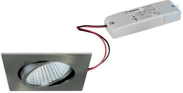 LED-Einbaustrahlerset, schaltbar, nickel matt, quadratisch. Ausgeführt in kompakter Bauform für werkzeuglose Schnellmontage zum Deckeneinbau. Set inkl. Konverter für 230 V-Netzspannung, schaltbar, Maße Konverter: L 115 x B 34 x H 19 mm. Montageart: Einbaumontage, Montageort: Deckenmontage, Material: Aluminium / Glas, Schutzart: nach DIN EN 60529: IP20, Schutzklasse: (EN 61140) II, Spannung: 230V AC 50Hz, Leistung: 12W, Anzahl der Leuchtmittel / Fassungen: 1.0 Stk, Lichtstrom: 1.080lm, Farbtemperatur: 2700 K, Lichtfarbe: weiß, Abstrahlwinkel: 38°, Verstellbarkeit: schwenkbar, mit Betriebsgerät, Art der Dimmung: schaltbar.