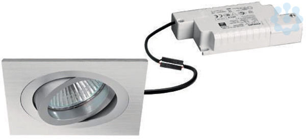 LED-Einbaustrahlerset, Phasenabschnitt dimmbar, alu matt, quadratisch. Ausgeführt in kompakter Bauform für werkzeuglose Schnellmontage zum Deckeneinbau. Set inkl. Konverter für 230 V-Netzspannung, Phasenabschnitt dimmbar, Maße Konverter: L 110 x B 50 x H 19 mm Ausführung: ohne Fassung, Montageart: Einbaumontage, Montageort: Deckenmontage, Material: Aluminium / Glas / Kunststoff, Schutzart raumseitig: nach DIN EN 60529: IP20, Schutzklasse: (EN 61140) II, Spannung: 230V AC 50Hz, Leistung: 6 W, Anzahl der Leuchtmittel / Fassungen: 1 Stück, Lichtstrom: 680 lm, Farbtemperatur: 3.000 K, Abstrahlwinkel: 38°, Verstellbarkeit: schwenkbar, Mit Betriebsgerät: Ja, Dimmbar: Ja, Art der Dimmung: Phasenabschnitt.