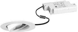 LED-Einbaustrahlerset, mit Linsenoptik, Phasenabschnitt dimmbar, weiß, rund. Ausgeführt in kompakter Bauform für werkzeuglose Schnellmontage zum Deckeneinbau. Set inkl. Konverter für 230 V-Netzspannung, Phasenabschnitt dimmbar, Maße Konverter: L 110 x B 50 x H 19 mm Montageart: Einbaumontage, Montageort: Deckenmontage, Material: Aluminium / Kunststoff, Schutzart raumseitig: nach DIN EN 60529: IP20, Schutzklasse: (EN 61140) II, Spannung: 230V AC 50Hz, Leistung: 6 W, Anzahl der Leuchtmittel / Fassungen: 1 Stück, Lichtstrom: 660 lm, Farbtemperatur: 3.000 K, Abstrahlwinkel: 38°, Verstellbarkeit: schwenkbar, Mit Betriebsgerät: Ja, Dimmbar: Ja, Art der Dimmung: Phasenabschnitt.