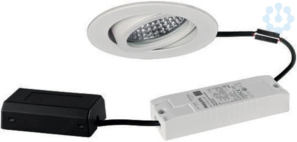 LED-Einbaustrahlerset, DALI dimmbar, mit Anschlussbox, weiß, rund. Ausgeführt in kompakter Bauform für werkzeuglose Schnellmontage zum Deckeneinbau. Set inkl. Konverter für 230 V-Netzspannung, DALI-2 dimmbar, ohne Nachglimm-Effekt, Maße Konverter: L 130 x B 42 x H 22 mm Ausführung: ohne Fassung, Montageart: Einbaumontage, Montageort: Deckenmontage, Material: Aluminium / Glas / Kunststoff, Schutzart raumseitig: nach DIN EN 60529: IP20, Schutzklasse: (EN 61140) II, Spannung: 230V AC 50Hz, Leistung: 6 W, Anzahl der Leuchtmittel / Fassungen: 1 Stück, Lichtstrom: 680 lm, Farbtemperatur: 3.000 K, Abstrahlwinkel: 38°, Verstellbarkeit: schwenkbar, Mit Betriebsgerät: Ja, Dimmbar: Ja, Art der Dimmung: DALI-2.