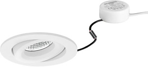 LED-Einbaustrahlerset, Phasenabschnitt dimmbar (Rundkonverter), strukturweiß, rund. Ausgeführt in kompakter Bauform für werkzeuglose Schnellmontage zum Deckeneinbau. Set inkl. Konverter für 230 V-Netzspannung, Phasenabschnitt dimmbar, Maße Konverter: D 51 x H 24 mm Montageart: Einbaumontage, Montageort: Deckenmontage, Material: Aluminium / Polycarbonat, Schutzart raumseitig: nach DIN EN 60529: IP20, Schutzklasse: (EN 61140) II, Spannung: 230V AC 50Hz, Leistung: 7 W, Anzahl der Leuchtmittel / Fassungen: 1 Stück, Lichtstrom: 680 lm, Farbtemperatur: 3.000 K, Abstrahlwinkel: 40°, Verstellbarkeit: schwenkbar, Mit Betriebsgerät: Ja, Dimmbar: Ja, Art der Dimmung: Phasenabschnitt.