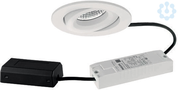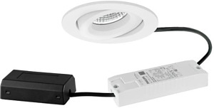 LED-Einbaustrahlerset, DALI dimmbar, mit Anschlussbox, strukturweiß, rund. Ausgeführt in kompakter Bauform für werkzeuglose Schnellmontage zum Deckeneinbau. Set inkl. Konverter für 230 V-Netzspannung, DALI-2 dimmbar, Maße Konverter: L 130 x B 42 x H 22 mm Montageart: Einbaumontage, Montageort: Deckenmontage, Material: Aluminium / Polycarbonat, Schutzart raumseitig: nach DIN EN 60529: IP20, Schutzklasse: (EN 61140) II, Spannung: 230V AC 50Hz, Leistung: 7 W, Anzahl der Leuchtmittel / Fassungen: 1 Stück, Lichtstrom: 680 lm, Farbtemperatur: 3.000 K, Abstrahlwinkel: 40°, Verstellbarkeit: schwenkbar, Mit Betriebsgerät: Ja, Dimmbar: Ja, Art der Dimmung: DALI-2.