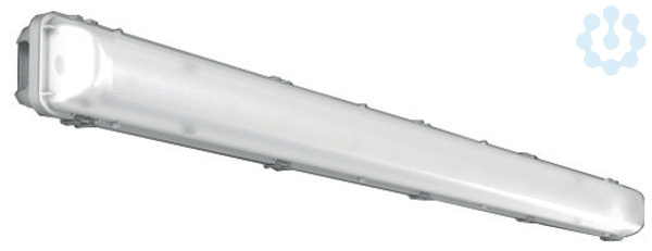 Feuchtraumanbauleuchte. Armatur Kunststoff (Polycarbonat). Innenliegende Halterung Stahlblech weiß lackiert. Dichtung zwischen Gehäuse und Diffusor aus alterungsbeständigem PU (Polyurethan)-Schaum. Diffusor Kunststoff (Polycarbonat). Diffusor spritzgegossen, innenprismatisch und UV-beständig. Befestigung des Diffusors durch Edelstahlclips. Lichtverteilung symmetrisch. Homogene Ausleuchtung. Montagefreundlich durch Schnellbefestigungsklammern aus Edelstahl. Leuchten mit begrenzter Oberflächentemperatur nach DIN EN 60598-2-24 zur Verwendung in einer Umgebung, in der eine Ablagerung von leitfähigem Staub auf der Leuchte erwartet werden kann.