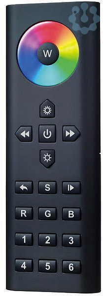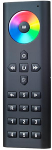 RGB-Funkfernbedienung zu 18192000. RGB-Funkfernbedienung zur Ansteuerung von RGB-LED-Modulen im Farblichtbereich. Spannung (Batterie): 4,5 V DC - 3 x AAA (nicht im Lieferumfang), Funkfrequenz: 869,5 MHz, Sendeleistung (Ps) < 0 dBm, Reichweite (Sichtverbindung): bis zu 20 m, Umgebungstemperatur (ta): 0 °C bis +40 °C, Maße: L 140 x B 48 x H 17 mm, Material: Kunststoff, Lieferung: inkl. Wandhalterung Funktionsumfang: - Ein / Aus - RGB-Farbwechsel über Touchwheel - Dimmtasten für rot / grün / blau - Farbverlauf: Start / Stopp - Farbverlauf: Geschwindigkeit - Dimmung der eingestellten Lichtfarbe - Speichertaste S - Controllerauswahltasten für Zone 1 bis 6 Kompatibel zu Funk-Master-Controller 18192000, weitere Funktionen entnehmen Sie bitte der Produktbeschreibung. . Schutzart raumseitig: nach DIN EN 60529: IP20.