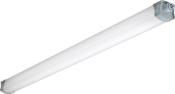 LED Profilleuchte mit integriertem LED-Konverter. Geeignet für Wand- und Deckenmontage. Zugelassen für den Einsatz in Innen- und geschützten Außenbereichen. Schnellmontage mit Deckenklammer aus Edelstahl (Leuchte einclipsbar), ausrichten der Leuchte durch den variablen Verschiebebereich ±100mm. Profil aus schlagfestem Polycarbonat (PC) in lichtsteuernder opalisierter Optik. Endkappen aus schlagfestem Polycarbonat (PC) grau. Deckenaufhellung mit hohem Indirektanteil von 16 %. Geräteträger aus Stahlblech verzinkt in weiß. Leuchte mit begrenzter Oberflächentemperatur, für Bereiche, in denen leitfähige Stäube zu erwarten sind.