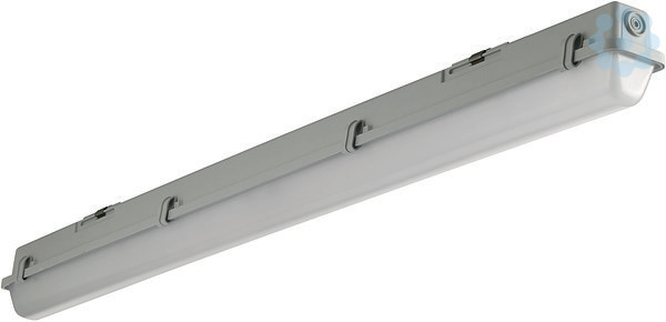 LED Feuchtraum-Wannenleuchte mit Gehäuse aus schwer entflammbarem, glasfaserverstärktem Polyester (GRP) hellgrau. Alterungsbeständige, geschäumte Polyurethandichtung (PU). Geräteträger weiß mit LED-Strips, Zhagakonform. Die LED-Module sind durch eine autorisierte Fachkraft austauschbar. Wannenverschluss aus Kunststoff. Wanne aus UV-beständigem Polymethylmethacrylat (PMMA), opalisiert. Einfache Deckenbefestigung mit beiliegenden multifunktionalen Schnellmontage-Befestigungsklammern aus Edelstahl (Leuchte einklipsbar). Ausrichten der Leuchte durch den variablen Verschiebebereich um 60 mm. Leuchte mit begrenzter Oberflächentemperatur, für Bereiche, in denen leitfähige Stäube zu erwarten sind.