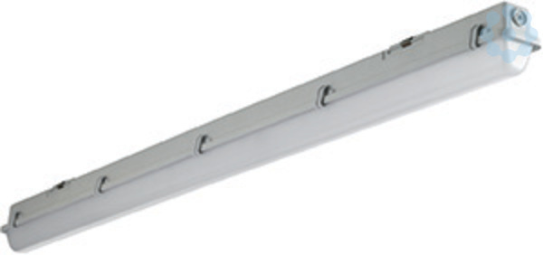 LED Feuchtraum-Wannenleuchte mit Ersatzlichtfunktion (Einzelbatterie). Gehäuse aus schwer entflammbarem, glasfaserverstärktem Polyester (GRP) hellgrau. Alterungsbeständige, geschäumte Polyurethandichtung (PU). Geräteträger weiß mit LED-Strips, Zhagakonform. Die LED-Module sind durch eine autorisierte Fachkraft austauschbar. Wannenverschluss aus Kunststoff. Wanne aus UV-beständigem Polymethylmethacrylat (PMMA), opalisiert. Einfache Deckenbefestigung mit beiliegenden multifunktionalen Schnellmontage-Befestigungsklammern aus Edelstahl (Leuchte einklipsbar). Ausrichten der Leuchte durch den variablen Verschiebebereich um 60 mm. Leuchte mit begrenzter Oberflächentemperatur, für Bereiche, in denen leitfähige Stäube zu erwarten sind. Zugelassen für den Einsatz in Innenbereichen, der Einsatz im überdachten Außenbereich ist auf Grund des beschränkten Temperaturbereiches der verbauten Batterie (ab +5°C) nur bedingt zu empfehlen.