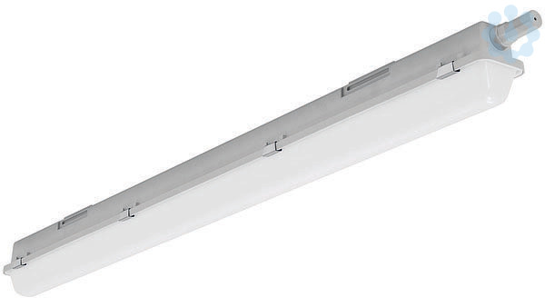 LED Feuchtraum-Wannenleuchte, mit integrierter Durchgangsverdrahtung. Gehäuse aus schwer entflammbarem, glasfaserverstärktem Polyester (GRP) hellgrau. Alterungsbeständige, geschäumte Polyurethandichtung (PU). Mit integriertem LED-Konverter und Quick-Anschluss für den vereinfachten Anschluss der Zuleitung, ein Öffnen der Leuchte ist nicht mehr nötig. Geräteträger weiß aus Stahlblech. Die LED-Module sind durch eine autorisierte Fachkraft austauschbar. Wanne aus UV-beständigem Polymethylmethacrylat (PMMA), opalisiert. Wannenverschluss aus Edelstahl. Einfache Deckenbefestigung mit beiliegenden multifunktionalen Schnellmontage-Befestigungsklammern aus Edelstahl (Leuchte einklipsbar). Ausrichten der Leuchte durch den variablen Verschiebebereich um 60 mm. Leuchte mit begrenzter Oberflächentemperatur, für Bereiche, in denen leitfähige Stäube zu erwarten sind.