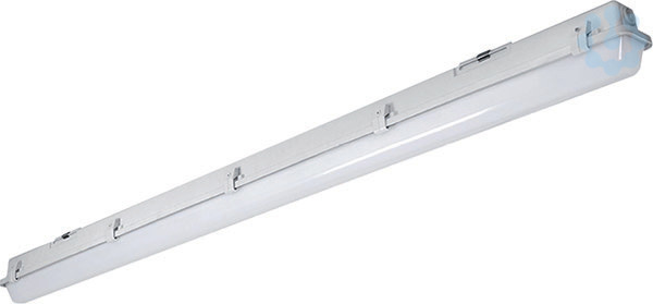 LED Feuchtraum-Wannenleuchte mit integriertem LED-Konverter. Alterungsbeständige, geschäumte Polyurethandichtung (PU). Geräteträger weiß mit LED-Strips, Zhaga-konform. Austausch durch eine autorisierte Fachkräfte möglich. Verschluss aus Kunststoff, 3-teilig, davon 2 mit Sicherungsschraube (NON-SELV). Wanne aus UV-beständigem Polymethylmethacrylat (PMMA), opalisiert. Einfache Deckenbefestigung mit beiliegenden multifunktionalen Schnellmontage-Befestigungsklammern aus Edelstahl (Leuchte einklipsbar). Ausrichten der Leuchte durch den variablen Verschiebebereich um 60 mm. Leuchte mit begrenzter Oberflächentemperatur, für Bereiche, in denen leitfähige Stäube zu erwarten sind.
