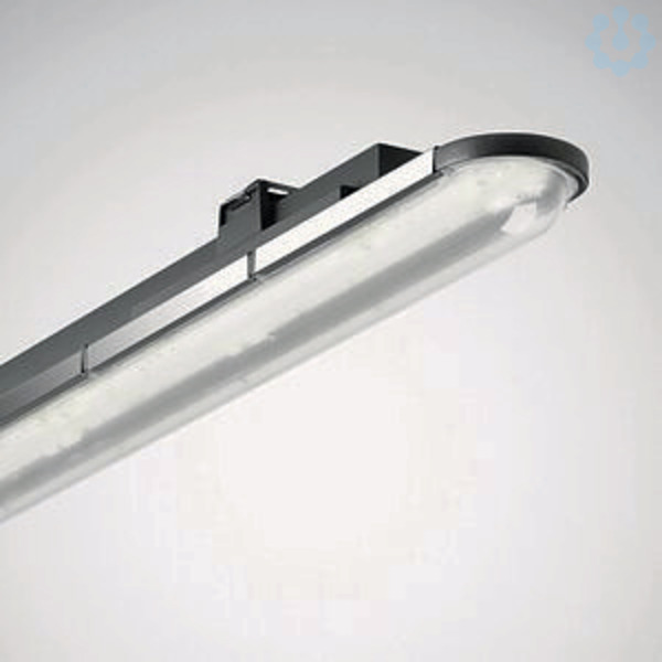 LED-Feuchtraumleuchte. Mit Durchgangsverdrahtung 5 x 1,5 mm2. Schnellstecksystem Typ Phönix. Anbauleuchte für Feuchträume und überdachte Außenbereiche. Geeignet zur Anwendung in HACCP, IFS und/oder BRC Global Standard Food zertifizierten Unternehmen (DIN 10500). Mit begrenzter Oberflächentemperatur, für den Einsatz in feuergefährdeten Räumen gemäß DIN EN 60598-2-24 geeignet. Für Decken- und Wand- sowie abgehängte Montage. Montageclips und Triangelbügel für abgehängte Montage im Lieferumfang enthalten. Zur Montage an Tragschiene 190 VZ geeignet. Bei einer Wandmontage ist die Leuchte mittels separat zu bestellendem Zubehör vor ungewollter Demontage zu schützen (ZB ATL1). Optisches System bestehend aus Primäroptiken mit PC-Diffusor. Mit symmetrisch tief-breit strahlender Lichtstärkeverteilung. Blendungsbewertung nach UGR-Einstufung (EN 12464-1) < 25. Bemessungslichtstrom 6300 lm, Bemessungsleistung 39,00 W, Leuchten-Lichtausbeute 162 lm/W. Lichtfarbe neutralweiß, ähnlichste Farbtemperatur (CCT) 4000 K, allgemeiner Farbwiedergabeindex (CRI) Ra > 80. Mittlere Bemessungslebensdauer L85(tq 35 °C) = 50.000 h, mittlere Bemessungslebensdauer L80(tq 35 °C) = 85.000 h. Leuchtenkörper aus Aluminium-Druckguss. Robuste Konzeption mit erschütterungsfreien Komponenten. Farbe Leuchtenkörper anthrazit, (DB 703). Maße (L x B): 1047 mm x 96 mm, Leuchtenhöhe 112 mm. Zulässige Umgebungstemperatur (ta): -30 °C - +35 °C. Schutzklasse (EN 61140): I, Schutzart (DIN EN 60529): IP66, Stoßfestigkeitsgrad nach IEC 62262: IK08, Prüftemperatur Glühdrahttest gemäß IEC 60695-2-11: 850 °C. Gewicht: 3,6 kg. Anschlussvorrichtungen an beiden Stirnseiten als Buchse oder Stecker ausgeführt. Passende Anschlussbuchse und -stecker im Lieferumfang enthalten. Der elektrische Anschluss erfolgt werkzeuglos. Die Zugentlastung der Anschlussleitung erfolgt mittels der M25 Verschraubung des Schnell-Anschlusssteckers. Mit elektronischem Betriebsgerät, digital dimmbar (DALI). Betriebsgerät gemäß DALI-2-Standard (EN 62386). Die Leuchte ist für den Betrieb an einem 230V Gleichspannungsnetz (DC) geeignet. Die Leuchte kann auf Anfrage mit der Funktionalität Monitoring ready (MOR) ausgestattet werden. Das Produkt erfüllt die grundlegenden Anforderungen der anwendbaren EU-Richtlinien und des Produktsicherheitsgesetzes und trägt die CE-Kennzeichnung. Zusätzlich ist die Leuchte durch eine unabhängige Prüfstelle ENEC-zertifiziert.