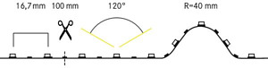 LED-Flexplatine, 5 m, CRI > 95, 15 W / m, IP00, LED-Weißlicht, 3.000K, CRI > 95 LED-Flexplatine zur Länge: 5000.0 mm Lampenleistung je Meter: 15.0 W/m, Lichtstrom je Meter: 1230.0 lm/m, Schutzart raumseitig: IP00, Schutzklasse: III, Spannung: 24V DC, Abstrahlwinkel: 120.0 °, 60 LEDs pro Meter, Chip-Abstand (Short Pitch) : 16,7mm. Zur Individuellen Anwendung kann die LED-Flexplatine alle 100 mm eingekürzt werden. Die maximale Systemlänge von 10.000mm darf mit einer Einspeisung nicht überschritten werden.