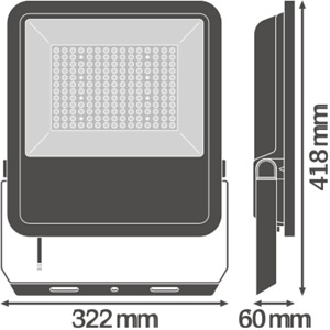 Scheinwerfer mit linsenbasierender Lichtverteilung bis zu 140 lm/W. Produkteigenschaften: Hohe Lichtausbeute: bis zu 140 lm/W. Asymmetrische Lichtverteilung für ein breites Anwendungsspektrum. Integriertes Vorschaltgerät mit großem Eingangsspannungsbereich, geeignet für 100 - 277 V AC. Angeschrägter (30 °) Montagebügel mit Rotationsbereich bis zu 210 °. Schutzart: IP65. Stoßfestigkeit: IK08. Umgebungstemperaturbereich bei Betrieb: -30…+50 °C. Hoher Überspannungsschutz von bis zu 6 kV (L/N-PE), 4 kV (L-N). Integrierte Klimamembrane zur Verhinderung von Kondensatbildung im Inneren der Leuchte. Vorinstalliertes, flexibles Kabel (H05RN-F) mit 1 m Länge, 3 x 1.0 mm² gekrimpt. Produktvorteile: Energieersparnis von bis zu 90 % verglichen mit Halogenlampen-Flutern. Bis zu 45 % Energieersparnis verglichen mit Leuchten, die herkömmliche Entladungslampen nutzen. Hohe Lichthomogenität. Kein Lichtaustritt im oberen Halbraum (ULOR 0%) bei 0° Aufneigung. 5 Jahre Garantie. Anwendungsgebiete: Direkter Ersatz für Leuchten, die HID-Lampen verwenden. Außenanwendung (IP65). Öffentlicher Raum. Industrie. Sportstätten. Parkplätze.