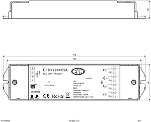 Der LED-Multicolor-Empfänger kann für Unicolor-, Tunable-White-, RGB-, und RGBW-Leuchten verwendet werden. Geeignet für Leuchten mit einer Betriebsspannung von 12, 24 und 36V/DC. Die tatsächlich zu verwendende Eingangsspannung ist abhängig von der benötigten Spannung der angeschlossenen Leuchten. 1x Eingang, so wie 1x Ausgang für 12-36V/DC und 4x Ausgang (RGBW). Die Schraubklemmen sind für Kabel von 0,5mm² - 1,5mm² geeignet. Technische Daten: ta: -20°C - 50°C, tc: 75°C, max. Ausgangsleistung je Kanal: 5A (60W bei 12V/DC, 120W bei 24V/DC und 180W bei 36V/DC). Die Ansteuerung erfolgt über Funk-Sender mit 868MHz. Um auch größere Anlagen problemlos umsetzen zu können, können mehrere Controller als Master-Slave-Anwendung synchron gesteuert werden.