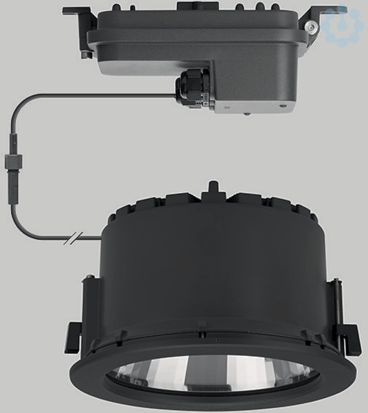 BEGA Deckeneinbau-Tiefstrahler 24665K3. Asymmetrische Lichtstärkeverteilung. Mit BEGA Constant Optics® : Hocheffiziente und verlustarme Lichtverteilung durch Reflektor und optischer Linse. LED, 56 W Leuchten-Anschlussleistung, Leuchten-Lichtstrom 5884 lm, Halbstreuwinkel 66/65°, Farbtemperatur 3000 K. Farbwiedergabeindex (CRI) > 80. Mit austauschbarem BEGA LED-Modul mit Übertemperaturschutz und einer Lebenserwartung von mindestens 50.000 Betriebsstunden. 20-jährige Nachliefergarantie auf das LED-Modul und die Verschleißteile. Mit BEGA Ultimate Driver® LED-Netzteil, DALI-steuerbar, 220-240 V, 0/50-60 Hz im externen Gehäuse. Schutzart IP 65. Leuchte aus Aluminiumguss, Aluminium und Edelstahl Beschichtungstechnologie BEGA Unidure® . Flacher Abschlussring aus Aluminiumguss, Farbe Grafit. Sicherheitsglas mattiert. Reflektoroberfläche aus eloxiertem Reinstaluminium. Zwei Leitungsverschraubungen zur Durchverdrahtung der Netzanschlussleitung von ø 5-13 mm. 0,6 m Verbindungsleitung zwischen Leuchte und Netzteil. Abmessungen Ø 260 x 150 mm. Leuchte für den Einbau in eine Einbauöffnung mit den Abmessungen Ø 240 x 160 mm oder in das Einbaugehäuse 10444.
