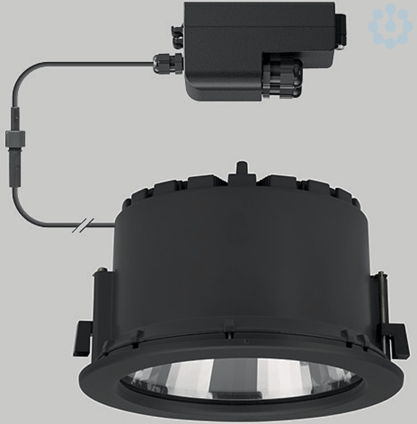 BEGA Deckeneinbau-Tiefstrahler 24760K3. Symmetrisch breitstreuende Lichtstärkeverteilung. BEGA Hybrid Optics® : Hocheffiziente und verlustarme Lichtverteilung durch Reflektor und optischer Linse. LED, 36,7 W Leuchten-Anschlussleistung, Leuchten-Lichtstrom 4465 lm, Halbstreuwinkel 76°, Farbtemperatur 3000 K. Farbwiedergabeindex (CRI) > 80. Mit austauschbarem BEGA LED-Modul mit Übertemperaturschutz und einer Lebenserwartung von mindestens 50.000 Betriebsstunden. 20-jährige Nachliefergarantie auf das LED-Modul und die Verschleißteile. Mit BEGA Ultimate Driver® LED-Netzteil, DALI-steuerbar, 220-240 V, 0/50-60 Hz im externen Gehäuse. Schutzart IP 65, Schutzklasse II. Ballwurfsicher. Leuchte aus Aluminiumguss, Aluminium und Edelstahl Beschichtungstechnologie BEGA Unidure® . Flacher Abschlussring aus Aluminiumguss, Farbe Grafit. Sicherheitsglas klar. Reflektoroberfläche aus eloxiertem Reinstaluminium. 2 Leitungsverschraubungen mit Zugentlastung zur Durchverdrahtung der Netzanschlussleitung von ø 4-10 mm, max. 5 x 1,5 qmm. 0,7 m Verbindungsleitung zwischen Leuchte und Netzteil. Abmessungen Ø 260 x 150 mm. Leuchte für den Einbau in eine Einbauöffnung mit den Abmessungen Ø 240 x 160 mm oder in das Einbaugehäuse 10444.