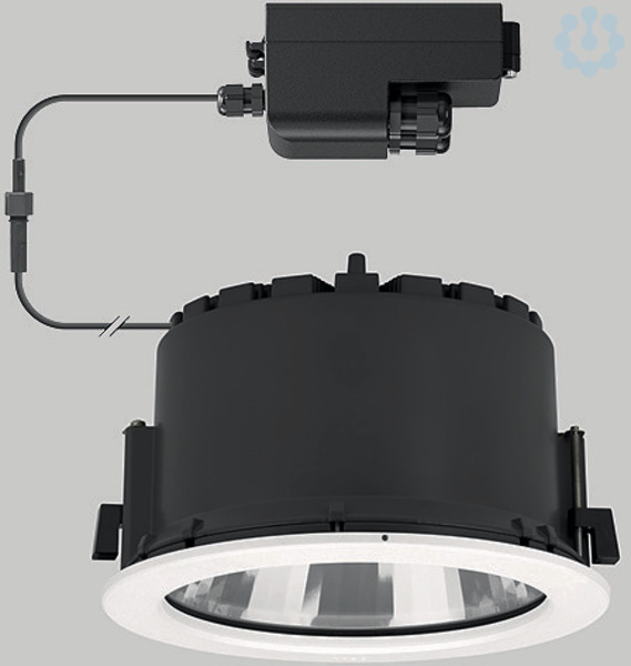 BEGA Deckeneinbau-Tiefstrahler 24759WK4. Symmetrisch breitstreuende Lichtstärkeverteilung. BEGA Hybrid Optics® Hocheffiziente und verlustarme Lichtverteilung durch Reflektor und optischer Linse. LED, 36,7 W Leuchten-Anschlussleistung, Leuchten-Lichtstrom 4925 lm, Halbstreuwinkel 50°, Farbtemperatur 4000 K. Farbwiedergabeindex (CRI) > 80. Mit austauschbarem BEGA LED-Modul mit Übertemperaturschutz und einer Lebenserwartung von mindestens 50.000 Betriebsstunden. 20-jährige Nachliefergarantie auf das LED-Modul und die Verschleißteile. Mit BEGA Ultimate Driver® LED-Netzteil, DALI-steuerbar, 220-240 V, 0/50-60 Hz im externen Gehäuse. Schutzart IP 65, Schutzklasse II. Leuchte aus Aluminiumguss, Aluminium und Edelstahl Beschichtungstechnologie BEGA Unidure® . Flacher Abschlussring aus Aluminiumguss, Farbe Weiß. Sicherheitsglas klar. Reflektoroberfläche aus eloxiertem Reinstaluminium. 2 Leitungsverschraubungen mit Zugentlastung zur Durchverdrahtung der Netzanschlussleitung von ø 4-10 mm, max. 5 x 1,5 qmm. 0,7 m Verbindungsleitung zwischen Leuchte und Netzteil. Abmessungen Ø 260 x 150 mm. Leuchte für den Einbau in eine Einbauöffnung mit den Abmessungen Ø 240 x 160 mm oder in das Einbaugehäuse 10444.