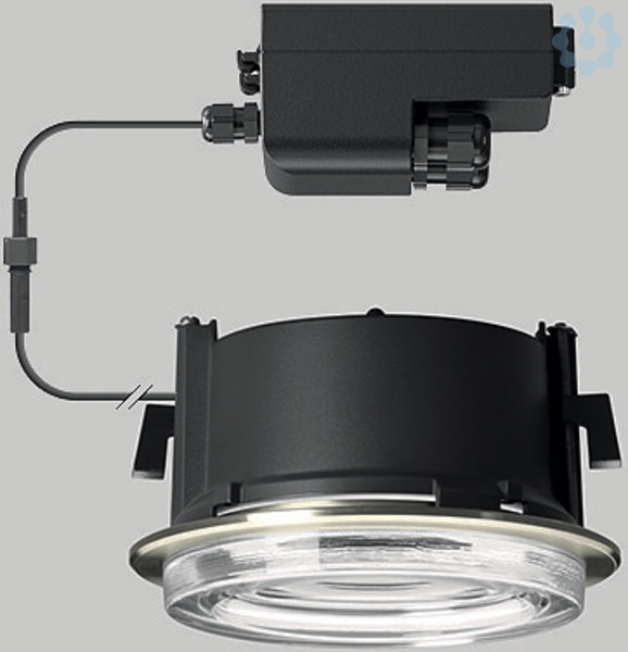 BEGA Deckeneinbau-Kompakttiefstrahler 24678K4. Symmetrisch breitstreuende Lichtstärkeverteilung. LED, 21,5 W Leuchten-Anschlussleistung, Leuchten-Lichtstrom 1493 lm, Halbstreuwinkel 43°, Farbtemperatur 4000 K. Farbwiedergabeindex (CRI) > 80. Mit austauschbarem BEGA LED-Modul mit Übertemperaturschutz und einer Lebenserwartung von mindestens 50.000 Betriebsstunden. 20-jährige Nachliefergarantie auf das LED-Modul und die Verschleißteile. Mit BEGA Ultimate Driver® LED-Netzteil, DALI-steuerbar, 220-240 V, 0/50-60 Hz im externen Gehäuse. 2 Leitungsverschraubungen mit Zugentlastung zur Durchverdrahtung der Netzanschlussleitung von ø 4-10 mm, max. 5 x 1,5 qmm. Schutzart IP 65, Schutzklasse II. Leuchte aus Aluminiumguss, Aluminium und Edelstahl, Blendring aus Edelstahl. Kristallglas teilmattiert. Reflektor aus eloxiertem Reinstaluminium. 0,7 m Verbindungsleitung zwischen Leuchte und Netzteil. Für Einbau in Zwischendecken mit einer Materialstärke von 5-55 mm. Abmessungen Ø 185 x 95 mm. Leuchte für den Einbau in eine Einbauöffnung mit den Abmessungen Ø 160 x 90 mm oder in das Einbaugehäuse 10442.