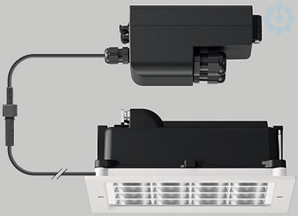 BEGA Deckeneinbau-Kompakttiefstrahler 24689K3. Asymmetrisch-streuende Lichtstärkeverteilung. BEGA Vortex Optics® LED, 35,6 W Leuchten-Anschlussleistung, Leuchten-Lichtstrom 2879 lm, Halbstreuwinkel 46/52°, Farbtemperatur 3000 K. Farbwiedergabeindex (CRI) > 80. Mit austauschbarem BEGA LED-Modul mit Übertemperaturschutz und einer Lebenserwartung von mindestens 50.000 Betriebsstunden. 20-jährige Nachliefergarantie auf das LED-Modul und die Verschleißteile. Mit BEGA Ultimate Driver® LED-Netzteil, DALI-steuerbar, 220-240 V, 0/50-60 Hz im externen Gehäuse. 2 Leitungsverschraubungen mit Zugentlastung zur Durchverdrahtung der Netzanschlussleitung von ø 4-10 mm, max. 5 x 1,5 qmm. Schutzart IP 65, Schutzklasse II. Leuchte aus Aluminiumguss, Aluminium und Edelstahl Beschichtungstechnologie BEGA Unidure® , Farbe Weiß. Sicherheitsglas mit optischer Struktur. Reflektoroberfläche aus eloxiertem Reinstaluminium. 0,7 m Verbindungsleitung zwischen Leuchte und Netzteil. Für Einbau in Zwischendecken mit einer Materialstärke von 10-45 mm. Abmessungen: 190 x 190 x 90 mm. Leuchte für den Einbau in einer Einbauöffnung mit den Abmessungen 177 x 177 x 70 mm oder in das Einbaugehäuse 13502.