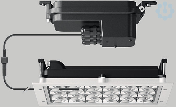 BEGA Deckeneinbau-Kompakttiefstrahler 24684K4. Streuende Lichtstärkeverteilung. BEGA Vortex Optics® LED, 60 W Leuchten-Anschlussleistung, Leuchten-Lichtstrom 7736 lm, Halbstreuwinkel 38°, Farbtemperatur 4000 K. Farbwiedergabeindex (CRI) > 80. Mit austauschbarem BEGA LED-Modul mit Übertemperaturschutz und einer Lebenserwartung von mindestens 50.000 Betriebsstunden. 20-jährige Nachliefergarantie auf das LED-Modul und die Verschleißteile. Mit LED-Netzteil, DALI-steuerbar, 220-240 V, 0/50-60 Hz im externen Gehäuse. 2 Leitungsverschraubungen mit Zugentlastung zur Durchverdrahtung der Netzanschlussleitung von ø 5-13 mm, max. 5 x 1,5 qmm. Schutzart IP 65. Leuchte aus Aluminiumguss, Aluminium und Edelstahl Beschichtungstechnologie BEGA Unidure® , Farbe Weiß. Sicherheitsglas mit optischer Struktur. Reflektoroberfläche aus eloxiertem Reinstaluminium. 0,5 m Verbindungsleitung zwischen Leuchte und Netzteil. Für Einbau in Zwischendecken mit einer Materialstärke von 5-55 mm. Abmessungen: 275 x 275 x 100 mm. Leuchte für den Einbau in einer Einbauöffnung mit den Abmessungen 260 x 260 x 65 mm oder in das Einbaugehäuse 13578.