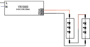 LED-Konverter 350 mA, schaltbar. Dieses Betriebsgerät erfüllt die Anforderungen für Sicherheitsbeleuchtungsanlagen nach DIN EN 50172 VDE 0108-100:2005-01. Dieser Konverter ist durch Sicherungseinrichtungen gegen Überspannung und Kurzschluss sowie thermische und elektrische Überlastung geschützt. Die Eingangs- und die Ausgangsklemme ist für Leitungen mit einem Querschnitt von bis zu 2,5 mm² geeignet. Material: Kunststoff, Schutzart: nach DIN EN 60529: IP20, Schutzklasse: (EN 61140) II, Spannung: 230V AC 50Hz, Leistung: 15W, Art der Dimmung: schaltbar.