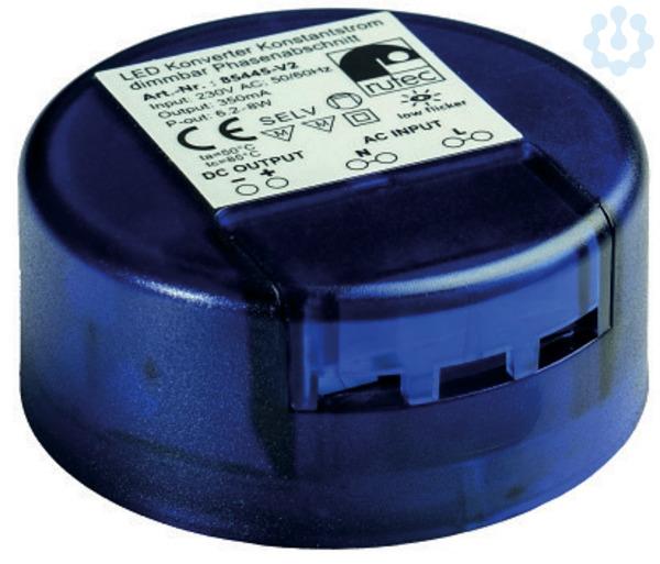 rutec LED Konverter Kontstantstrom-dimmbar für die Innenanwendung IP20 Eingebaute aktive Blindstromkompensation (Aktiv PFC) Schutzklasse II, CE, RoHS, MM Schutz gegen Kurzschluss, SELV, unabhängiger Konverter Leitungsquerschnitt am Steckklemmenanschluss: 0,5 - 1,5 qmm mit Zugentlastungsdeckel Dimmbar mit Phasen-Abschnittsdimmern Gehäuse: Kunststoff Eingangsspannung: 230V AC Ausgangsstrom: 350 mA Leistung: 6,2 - 9 Watt