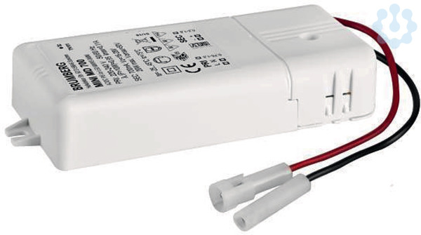 LED-Konverter 700 mA, Phasenabschnitt dimmbar. Dieser Konverter ist durch Sicherungseinrichtungen gegen Überspannung und Kurzschluss sowie thermische und elektrische Überlastung geschützt. Die Eingangs- und die Ausgangsklemme ist für Leitungen mit einem Querschnitt von bis zu 1,5 mm² geeignet. Material: Kunststoff, Schutzart: nach DIN EN 60529: IP20, Schutzklasse: (EN 61140) II, Spannung: 230V AC 50Hz , Leistung: 20W, Art der Dimmung: Phasenabschnitt.