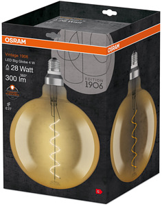 LED-Lampen, Vintage-Edition. Produkteigenschaften: LED-Lampen für Netzspannung. Lampe aus Glas. Lebensdauer: bis zu 15.000 h. Ausstrahlungswinkel: bis zu 360°. Gute Lichtqualität; Farbwiedergabeindex Ra: ≥ 80; konstanter Farbort. Produktvorteile: Sehr geringer Energieverbrauch. Sofort 100 % Licht, keine Aufwärmzeit. Einfacher Austausch von Standardglühlampen. Lampen mit innovativer LED-"Filament"-Technologie. Anwendungsgebiete: Ideal für dekorative Einbauten. Anwendungen im Haushalt. Allgemeinbeleuchtung. Einsatz im Außenbereich nur in geeigneten Außenleuchten.