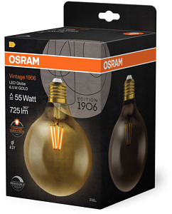 Dimmbare LED-Lampen, Vintage-Edition. Produkteigenschaften: LED-Lampen für Netzspannung. Lampe aus Glas. Lebensdauer: bis zu 15.000 h. Ausstrahlungswinkel: bis zu 360°. Dimmbar. Gute Lichtqualität; Farbwiedergabeindex Ra: ≥ 80; konstanter Farbort. Produktvorteile: Sehr geringer Energieverbrauch. Sofort 100 % Licht, keine Aufwärmzeit. Einfacher Austausch von Standardglühlampen. Lampen mit innovativer LED-"Filament"-Technologie. Anwendungsgebiete: Ideal für dekorative Einbauten. Anwendungen im Haushalt. Allgemeinbeleuchtung. Einsatz im Außenbereich nur in geeigneten Außenleuchten.