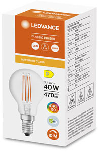 LED-Lampen, klassische Miniballform, dimmbar. Produkteigenschaften: LED-Lampen für Netzspannung. Ausstrahlungswinkel: bis zu 300°. Dimmbar. Farbwiedergabeindex Ra: ≥ 90. Produktvorteile: Lampen mit innovativer LED-"Filament"-Technologie. Design, Abmessungen, Lichtstrom vergleichbar mit einer Halogenlampe. Natürliches Lichtspektrum mit hervorragender Farbwiedergabe von CRI > 90. Stark reduzierter Blauanteil. Verbesserter Sehkomfort und geringere Augenbelastung. Sehr geringer Energieverbrauch. Sofort 100 % Licht, keine Aufwärmzeit. Geringes flackern. Anwendungsgebiete: Ideal für dekorative Einbauten. Anwendungen im Haushalt. Allgemeinbeleuchtung. Einsatz im Außenbereich nur in geeigneten Außenleuchten.