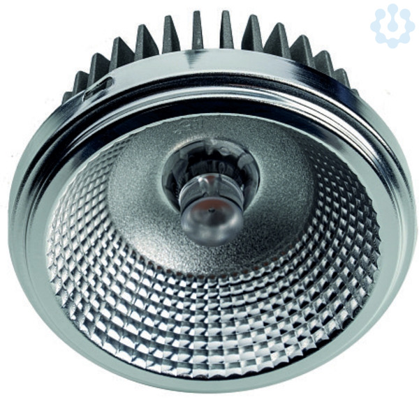 LED-Modul 18W mit Reflektor, 111 mm dimmbar Betriebsstrom: 500 mA Leistung: 18W Lichtstrom: 1830 lm Lichtfarbe: 3000 K CRI: >90 Lebensdauer L70B50: >= 50.000 h Ausstrahlwinkel: 45° Schutzklasse III Energieeffizienzklasse: E Sehr gute Wärmeableitung durch optimierten Aluminium-Kühlkörper Aluminiumreflektor mit Halogenoptik und gleichmäßiger Lichtverteilung