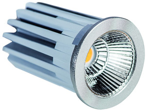 LED-Modul 5,5W mit Reflektor dimmbar Lichtfarbe:3000K Lebensdauer L70B50: >= 50.000 h für den Betrieb an Konstantstrom Vorschaltgeräten 600 mA Sehr gute Wärmeableitung durch optimierten Aluminium-Kühlkörper Aluminiumreflektor mit Halogenoptik und gleichmäßiger Lichtverteilung, Ausstrahlwinkel 40° Energieeffizienzklasse: E